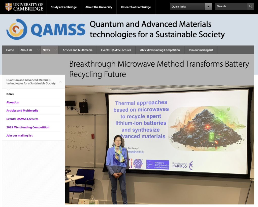 Prof. Bontempi did an invited lecture on March 27, 2026, at one of the most prestigious universities in the world, at the Cambridge Graphene Centre at the University of Cambridge. The activity of the Tech4lib project was presented.